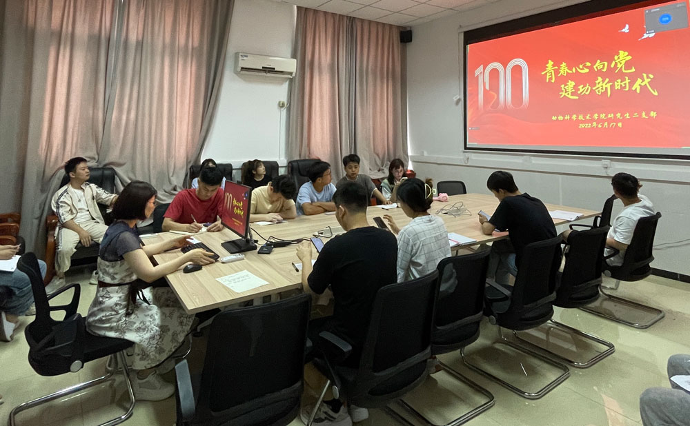 6月16日中午,学院研究生二支部书记范成莉在37教118会议室讲“青春心向党,建功新时代”主题微党课,支部全体党员、积极分子以线下+线上的方式参加。