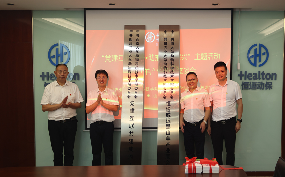 为深入学习贯彻习近平新时代中国特色社会主义思想和党的二十大精神,充分发挥学院党委的政治核心和广大党员的先锋模范作用,7月31日,学院联合四川农业大学动物科技学院赴四川内江开展“党建互联共建•助推乡村振兴”主题活动。内江市农业农村局及威远县农业农村局相关领导,恒通集团董事长郭亮及集团相关领导参会,学院党委书记赵智华、副书记文武、副院长赵中权,四川农业大学动物科技学院党委书记何桦、副院长赵小玲及老师代表参会。