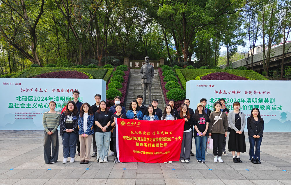 为缅怀革命先烈,弘扬爱国精神,加强革命传统教育,4月3日上午,学院研究生第一党支部和第二党支部在支部书记陈雪松和范成莉两位老师带领下前往袁隆平雕像、张自忠将军烈士陵园和侯光炯纪念馆,开展主题为“清明忆英烈,传承民族魂”的祭扫活动。