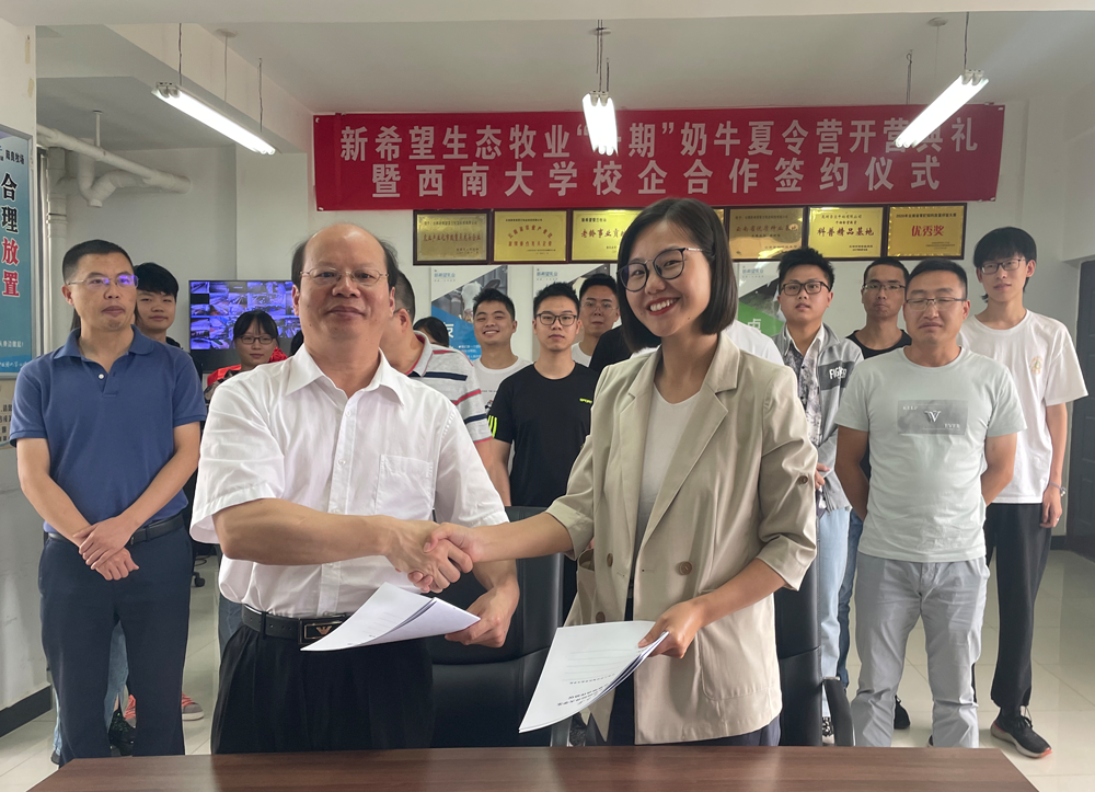 校外大学生实践教育基地合作协议,并参加了新希望雪兰奶牛养殖有限公司举办的第一期奶牛养殖夏令营的开营和授旗仪式。