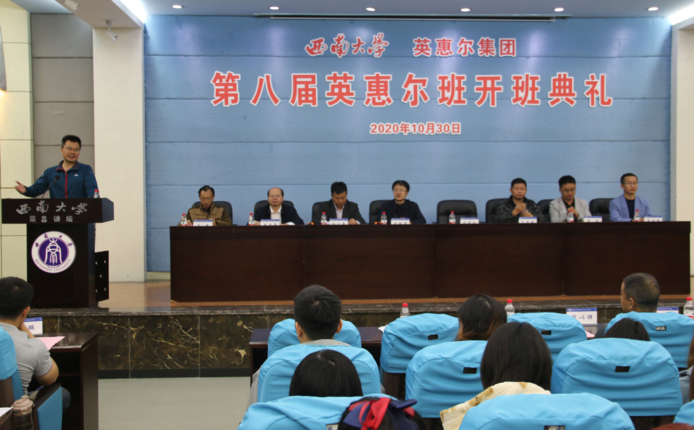 随后,学院院长赵永聚宣读了第八届英惠尔班班主任、主要学生干部和学员名单。接着,第八届“英惠尔班”班长杨国栋同学作为学员代表发言,他代表“英惠尔班”全体学员对学校和企业表示了诚挚谢意。杨国栋同学还讲述了加入“英惠尔班”的经历和感受,表示他们会充分利用“英惠尔班”这个平台,不断成长进步。