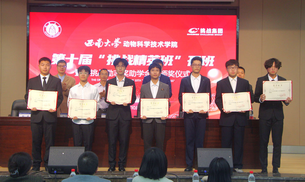 文武代表学院对挑战集团各位来宾表示诚挚的欢迎和衷心的感谢。指出,作为学院与挑战集团紧密合作结晶的“挑战精英班”,将为同学们提供一个良好的学习和锻炼平台,希望同学们在“挑战精英班”这个大家庭里发挥聪明才智,锐意进取、开拓创新,不忘奉献“三农”、助力乡村振兴的初心和使命,努力成长为一名优秀的现代畜牧科技人才,为实现中华民族伟大复兴的中国梦而不懈奋斗。