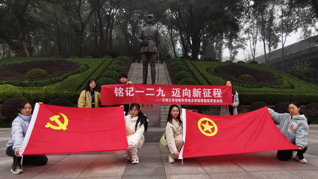 12月9日,“一二·九”抗日救亡运动88周年纪念日当天,学院“青春筑梦”宣讲团成员、团学干部及党员代表分别前往重庆市荣昌区烈士陵园和北碚区张自忠烈士墓开展纪念“一二·九”运动主题教育活动。