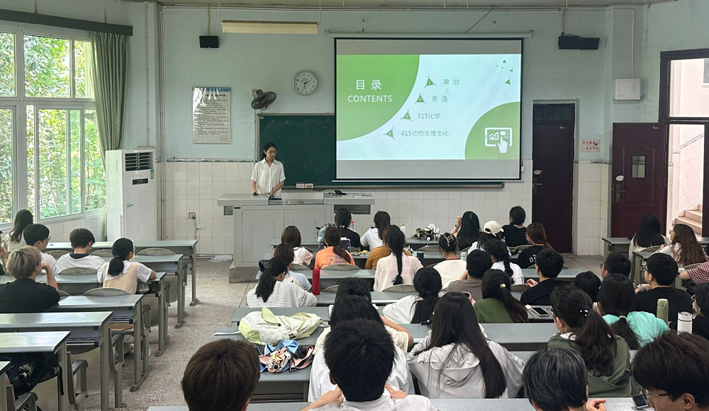 为助力2025届学子规划学业,全面成长成材,5月24日下午,学院邀请了2024届优秀学生代表分别在荣昌校区1102、1103、1104三个教室进行考研、保研、就业经验分享,弘扬“传帮带”精神,展现动科学子风采,全体2021级本科生及感兴趣的2022级、2023级学生积极参与,现场气氛热烈。