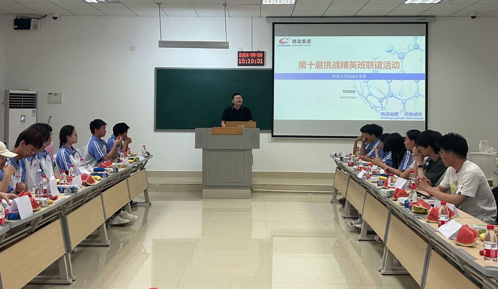帮助同学们更好地了解行业对人才的需求和就业形势,增强校企合作交流,5月26日,学院第十届“挑战精英班”在荣昌校区7b107教室组织开展就业指导培训讲座及2024年春季学期班级活动。挑战集团大客户事业部总经理陈艳青、人力资源部专员陈尚林,“挑战精英班”校内班主任彭香以及全体班级成员参加活动。