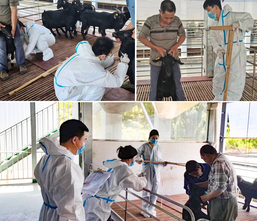 研究团队对大足黑山羊有着深厚的感情与扎实的研究基础,7月25日至27日,实践队结合前期工作,发挥专业优势,分批次前往大足区铁山镇、季家镇、珠溪镇、石马镇开展了科技下乡活动,队员们走进养殖圈舍,服务当地养殖户。长期以来,大足黑山羊饲养为“小而散”的粗放饲养模式,存在着规模小、不科学、不标准、粗生产、产量少、品质差等诸多问题。队员们进入不同农户养殖场中,先后测量上百只大足黑山羊的产肉性状,队员王磊、宋帅飞博士详细展示山羊人工授精技术,通过与养殖人员的深入沟通交流,推广合理饲料配方,宣传疫病防控知识,介绍智能化管理技术和理念,努力打通黑山羊养殖的“最后一公里”,进一步推进大足黑山羊种群品质提升,为全区大足黑山羊产业高质量发展提供力量。