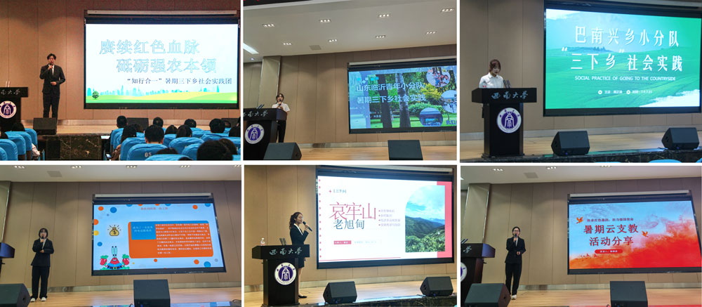 10月25日晚,学院在荣昌校区2211报告厅举行2024年大学生暑期“三下乡”社会实践经验交流大赛。学院党委书记赵智华,党委副书记、纪委书记文武,团委书记、学生工作办公室主任孙海军,学院办公室主任周勤飞,教务办公室主任李凤翔,党建组织员贺春湘,教学秘书郑优,研究生辅导员陈雪松,本科生辅导员朱恒宇等出席。学院各年级学生代表200余人参加。