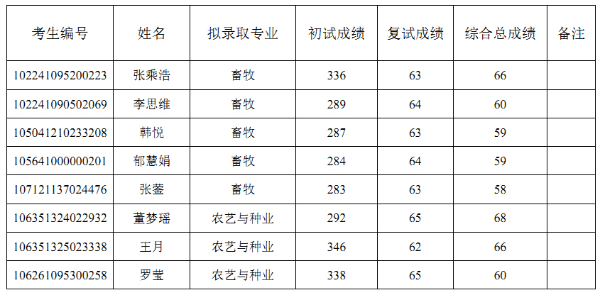 一、拟录取名单公示