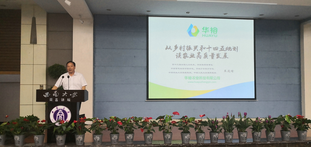 王连增董事长详细解读了乡村振兴和“十四五”规划等国家政策,深刻分析了新形势下农业高质量发展的趋势并提出自己的建议。他以华裕农业科技有限公司为例,指出人才是企业发展的第一资源,尤其要着重培养知识型、科研型、国际性人才;乡村振兴是实现共同富裕的必由之路、是补齐现代化短板的基础、是应对风险挑战的“压舱石”、是解决全球乡村问题的中国方案;立足新发展阶段、贯彻新发展理念、构建新发展格局、推动高质量发展,要大力发展科技农业、质量农业、绿色农业、品牌农业。最后,他结合自己的经历分享了人生感悟,希望同学们以不偷懒、不应付、不计较的“三不”原则要求自己,宽以待人、严于律己,鼓励大家独立奋斗,成为中国新一代的希望!随后的提问环节,同学们踊跃地就职业提升、专业发展等提问,王董事长一一进行了耐心细致的解答。