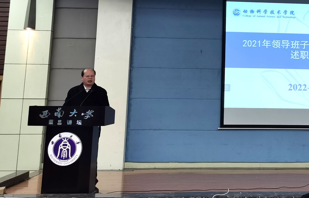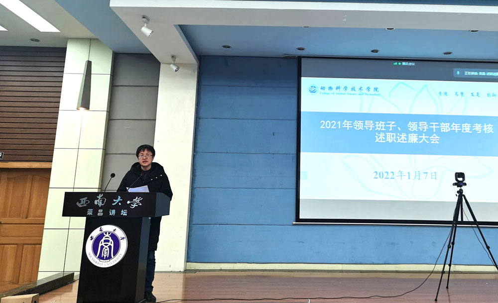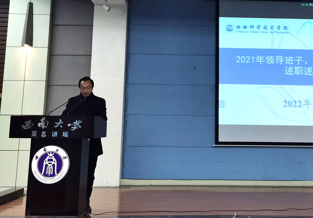 根据学校党委《关于开展2021年中层领导班子和领导干部年度考核工作的通知》有关要求,学院于1月7日下午召开领导班子和个人年度考核述职述廉大会。学校人力资源部副部长刘飞、荣昌校区管委会副主任任元明、机关党委党建科科长梅胜利、荣昌校区综合办副主任蒋兴、学院党政班子成员和全体教职工参加了会议。会议由学院党委书记赵智华主持。