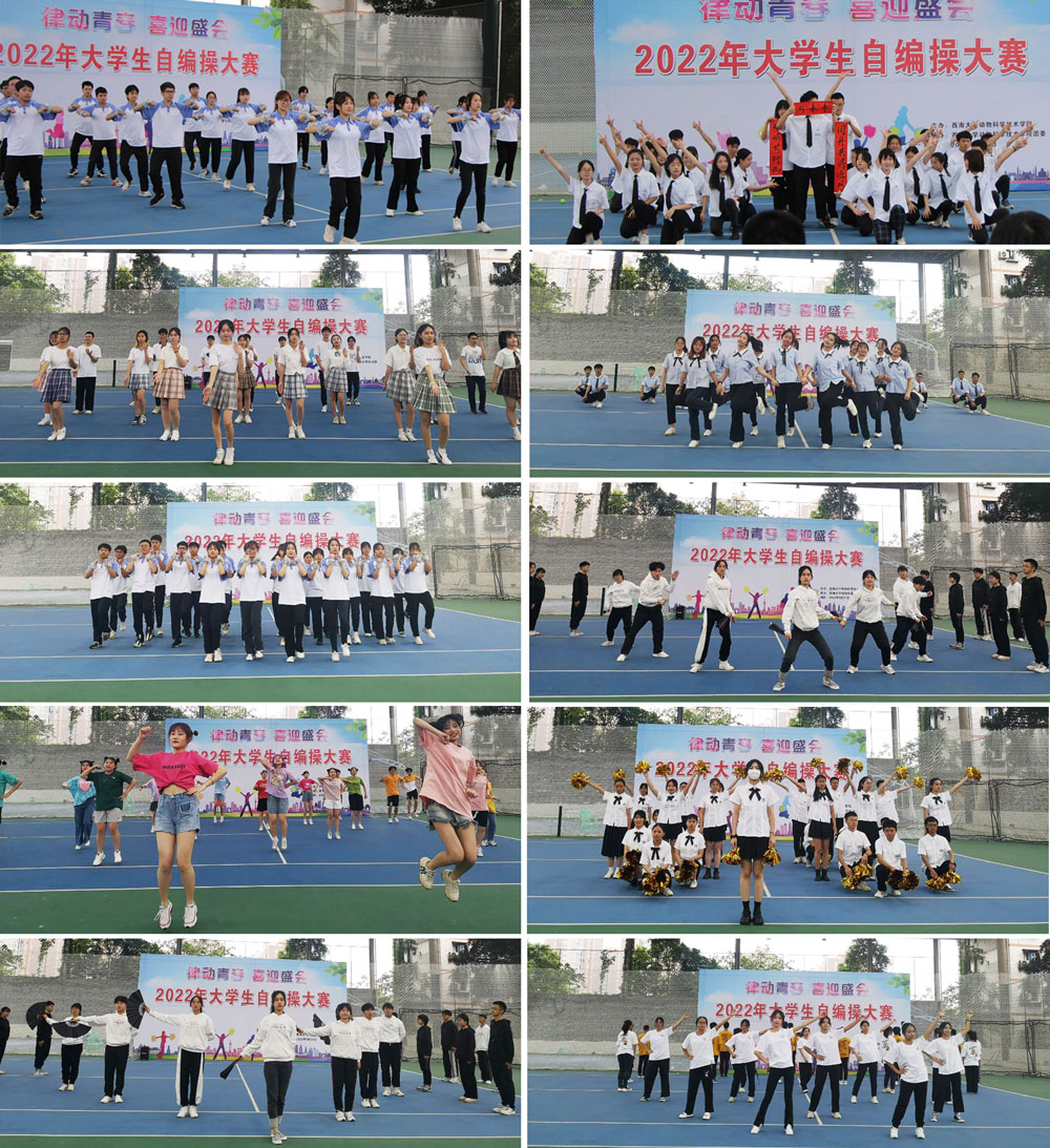 为庆祝中国共产主义青年团成立100周年,迎接党的二十大胜利召开,学院5月21日下午在荣昌校区风雨球场举办了“律动青春 喜迎盛会”2022年大学生自编操大赛决赛。学院办公室主任罗丹,团委书记、学生办公室主任孙海军,教务办公室主任周勤飞,组织员贺春湘,教学秘书李琰,辅导员彭香、朱恒宇等老师出席并担任现场评委,200名学生代表在线观看直播并担任线上评委。
