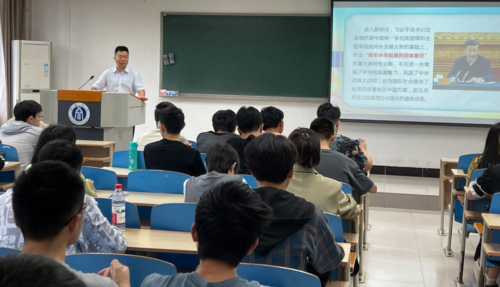赵永聚以《铸牢中华民族共同体意识 共同绘就中华民族伟大复兴壮美画卷》为题,从深刻把握中华民族多元一体的基本国情、全面认识民族团结进步事业的伟大成就、推动新时代党的民族工作高质量发展等方面深刻阐释了习近平总书记作出的“铸牢中华民族共同体意识”重大原创性论断,勉励同学们坚定理想信念,勇担时代重任,为实现中华民族伟大复兴,铸牢中华民族共同体意识贡献自己的力量。