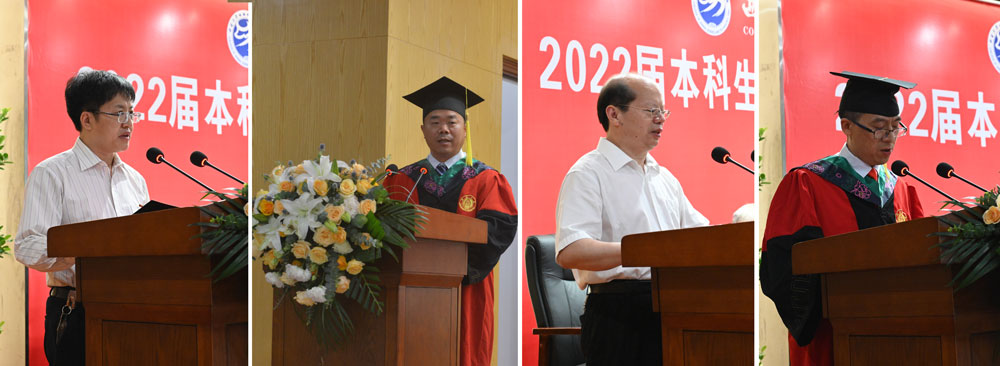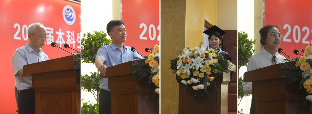 赵永聚院长在致辞中代表学院全院师生向全体2022届毕业生致以最热烈的祝贺和最美好的祝福,并提出三点希望:一是做一个信念坚定的人,无论何时都要保持学习,相信方法总比困难多,锻炼良好性格,锤炼高尚品格,成就信念坚毅的自己;二是做一个脚踏实地的人,在新的岗位上爱岗敬业、拼搏进取,做有理想、有抱负的年轻人、做谦虚好学的年轻人、做创新创优的年轻人,敢于尝试、勇于追梦;三是做一个勇于担当的人,要有一份光去发一份热,描绘出奋斗与奉献的青春底色,用青春、知识、大爱回报社会、尊敬父母、感恩师长。