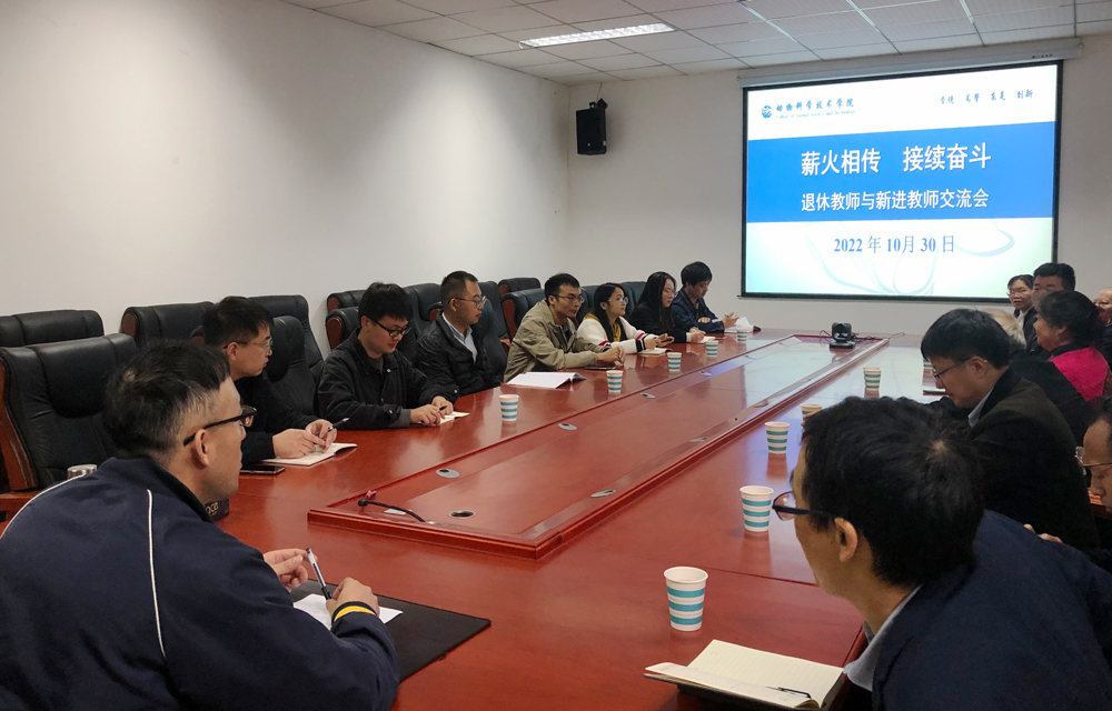 10月30日,学院在北碚校区37教219会议室举行主题为“薪火相传,接续奋斗”的退休教师与新进教师交流座谈会,会议由工会主席、教代会主任章杰主持。学院党委书记赵智华,院长、荣昌校区管委会主任赵永聚,副书记、纪委书记文武,副院长周克勇、赵中权,退休教师董国忠、牟芝兰,新进教师申玉建、李静、庞家满、彭夑、张淑婷、徐乃一、崔志富及在职教师代表出席座谈会。