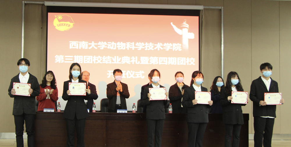 团委关于表彰第三期团校优秀学员的通知》,主席台就座的领导嘉宾为结业学员代表和优秀学员代表颁发了证书。