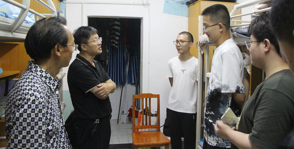 9月10日晚,学院党委书记赵智华、党委副书记纪委书记文武、副院长赵中权等领导走访寝室看望2023级新生,与新生亲切交流,了解新生住宿条件,询问新生适应情况,解答新生疑问。