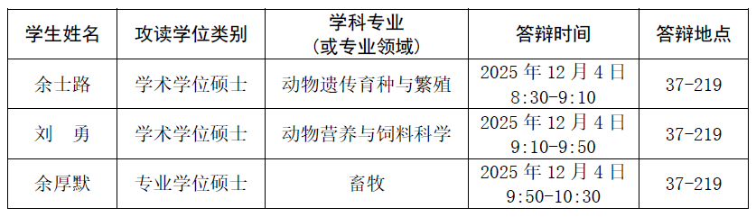 学院2025年秋季学期硕士研究生学位论文答辩于2025年12月4日进行,现予以公告,具体安排如下。
