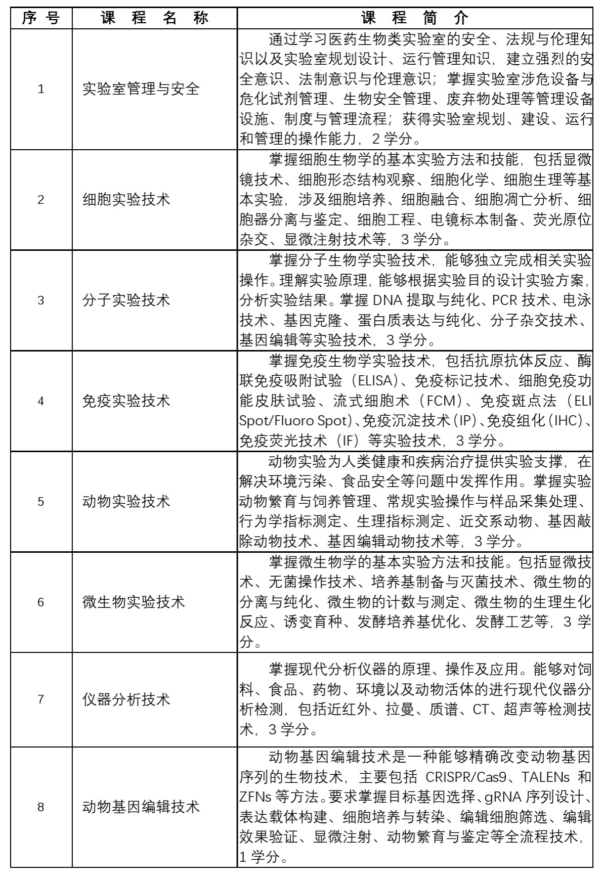 利用专业特长开设“动物生物实验与检测技术”微专业,针对医学科学、药学科学、动物生物实验与检测技术等岗位实用技术专业人才需求,专注实验室的基本知识、基本技术、基本能力,培养德、智、体、美、劳全面发展,具有强烈的安全意识、过硬的操作技术、可靠的实验室运管能力,掌握医学科学、药学科学、生物科学的全面实验技术原理和操作实践,从事实验室的技术与管理工作的高素质应用型人才。学习本微专业课程后能在高校、研究所、医院等教学科研机构的实验室和创新团队中担任实验技术支持,在生物技术企业、检测测试机构等企业从事实验室技术工作与管理工作,尤其对考研、读研的同学直接具有实验室技能支撑作用。