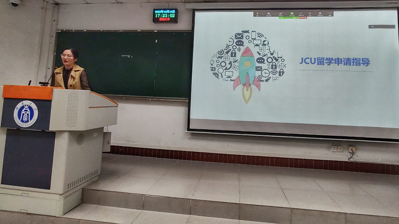 10月14日,学院与澳大利亚教育管理集团(AEMG)以及澳大利亚James Cook University(JCU)留学生一同开展了针对2020级、2021级在校学生的出国留学申请交流会。学院首批通过2+2出国留学项目赴JCU学习的余嘉和杜雨欣同学通过线上会议跟同学们分享了他们出国留学的准备与申请经验,同时也介绍了他们在JCU的学习与生活等实际情况。随后AEMG李露老师为在座学生详细讲解了两种出国留学项目申请材料和时间安排。