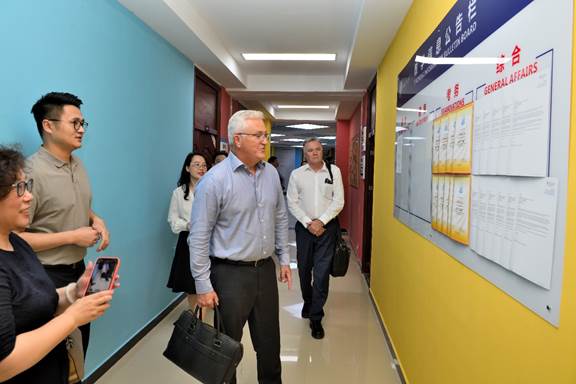 JCU常务副校长Marcus Lane教授,理学与工学部部长Ronald White教授,宣传、市场与招生部部长David Craig博士,学部合作关系主任Janie Edwards女士等人一行首先走访了中外合作办学项目外方课程建设、日常本科教学、学生出国留学等情况。