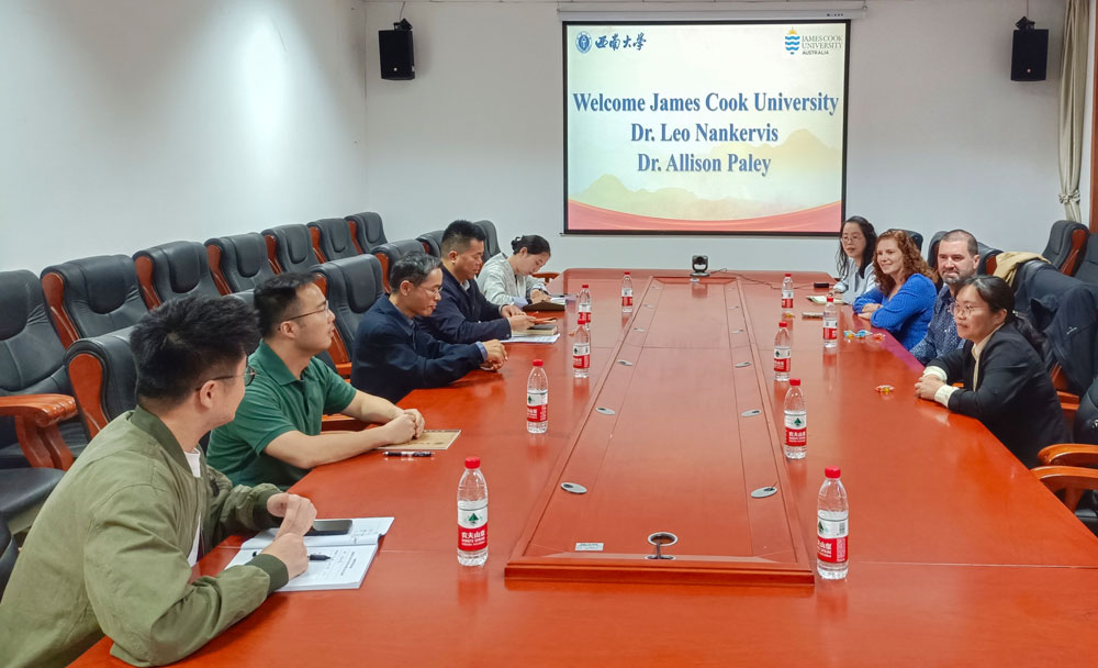3月24日下午,学院在北碚校区37教219会议室热烈欢迎来自澳大利亚詹姆斯∙库克大学的Dr. Leo Nankervis和Dr. Allison Paley两位教授来华授课。学院院长赵永聚、人才培养办公室主任李洋、《动物营养学》课程负责人唐志如、《生物统计与试验设计》课程负责人杨游等参加欢迎会。