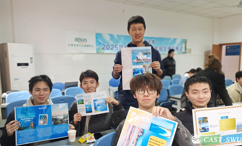 活动开始,外教Sarah、陈熙文为同学们介绍了自己制作的旅行手册,详细展示了JCU的办学历史、科研实力以及国际化教育优势。JCU作为澳大利亚顶尖的研究型大学之一,尤其在海洋科学、环境研究、热带医学等领域享有盛誉。两位老师还分享了JCU的校园生活、学术资源以及对国际学生的服务,激发了同学们对留学澳大利亚的浓厚兴趣。