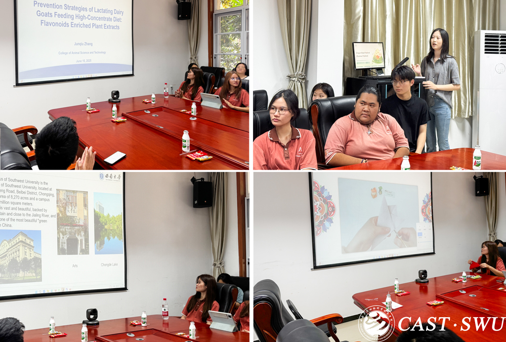 泰国访学团的同学们也带来了充满异域风情的文化展示。通过视频与讲解,介绍了泰国的传统节日、饮食文化及民俗风情,尤其是泼水节、水灯节等特色庆典,让在场同学仿佛置身于热情洋溢的泰国街头。
