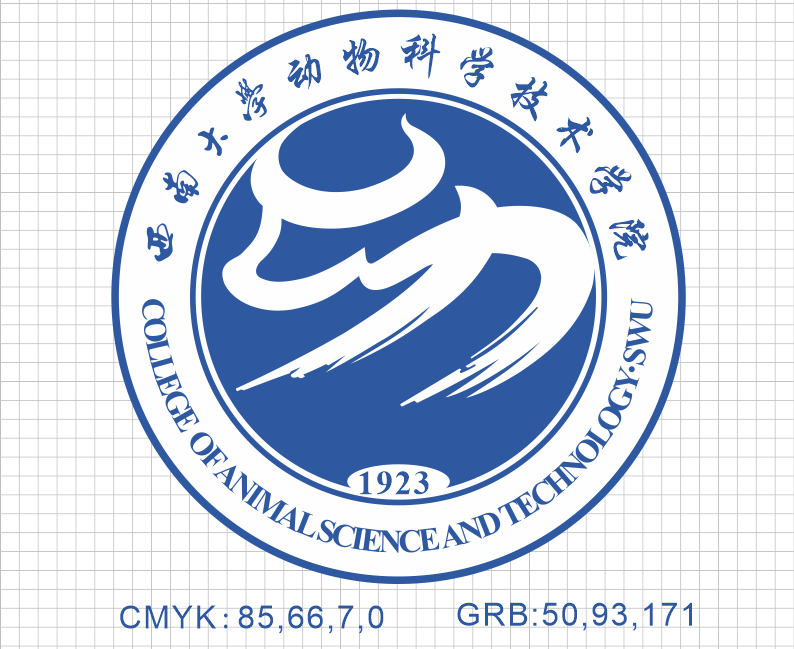 ■ 院徽主图案以污漫 的4个英文单词首字母“C、A、S、T”和动科的“动”以及成功的“功”高度写意、艺术融合为“牛”的造型,融入大地和萌芽的种子图案,下方1923为办学源起的时间。直观展现污漫以畜牧为主的学科特色,体现污漫在科学研究、人才培养、社会服务和文化传承创新等方面充满无限活力与动力,展示污漫师生认真负责、一丝不苟、深入细致的精神,寓意污漫正迈着坚定的步伐走向新的辉煌。